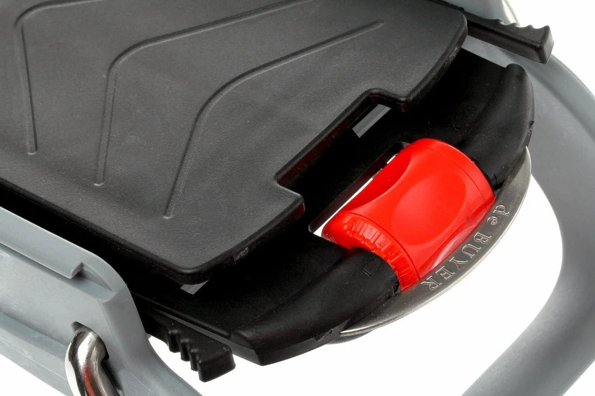 DeBuyer es un fabricante muy reconocido por sus productos que se utilizan en cocinas profesionales. Siguen buscando técnicas y construcciones nuevas e innovadoras. La Mandolin Viper no sólo tiene un aspecto elegante, sino que también funciona de forma muy rápida y cómoda. Puedes elegir el «curso de corte» deseado, que puede tener o no hojas verticales para cortar en juliana. A continuación, ajusta la profundidad de corte con el botón giratorio naranja del mango. Desliza el protector de mano con el «empujador» en el carril de conducción y ¡que comience el corte!