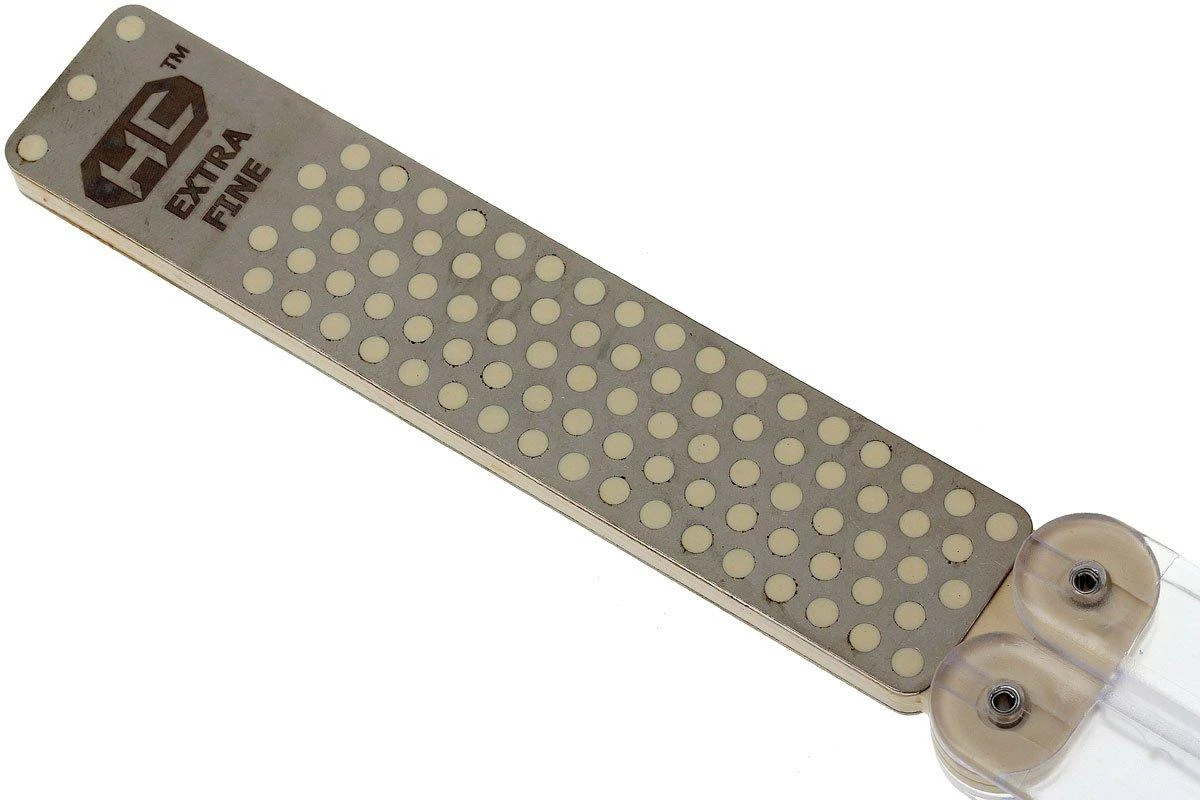 Una piedra Diafold tiene el diseño de un balisong, en el que las asas se doblan sobre la piedra de afilar de diamante. Esto protege la piedra a la perfección. Las piedras pueden utilizarse por ambos lados con diferentes tipos de grano.