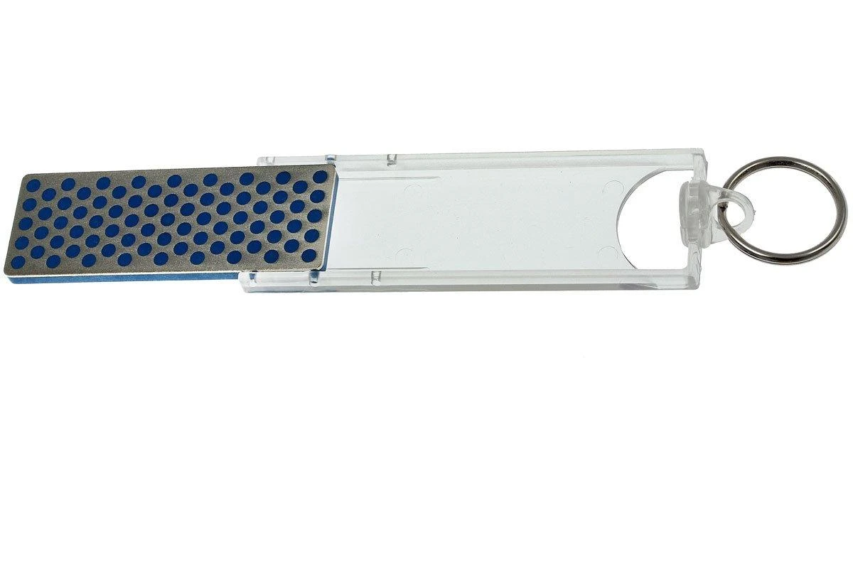 Acopla esta piedra de afilar compacta con superficie de afilado de diamante a tu manojo de llaves, y siempre tendrás la opción de retocar rápidamente el filo de tus cuchillos. El tamaño de la piedra es naturalmente muy pequeño, pero se trata de una piedra de afilar DMT adecuada con la calidad que acompaña a esa marca. Por lo tanto, es una piedra de afilar que hay que tomar en serio.