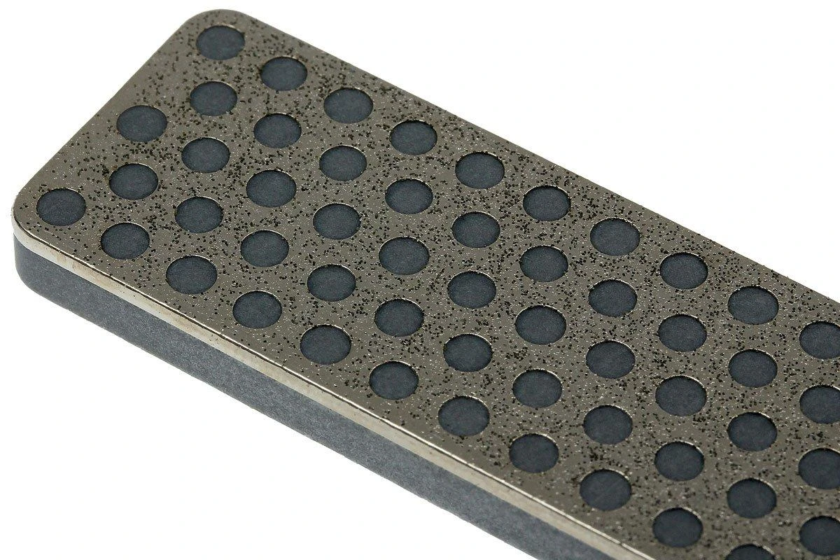 Al utilizar el kit de afilado Aligner de DMT, te aseguras de utilizar un ángulo constante mientras afilas. Esto es ideal para que tus cuchillos vuelvan a estar afilados. La piedra Extra Coarse te proporciona una herramienta para la eliminación de metal más agresiva, así como una alternativa segura al afilado en una máquina. Piensa siempre que una piedra de afilar de diamante tiene que estar preparada para el afilado. Solamente después de 5 a 10 cuchillos la piedra funciona como está previsto.