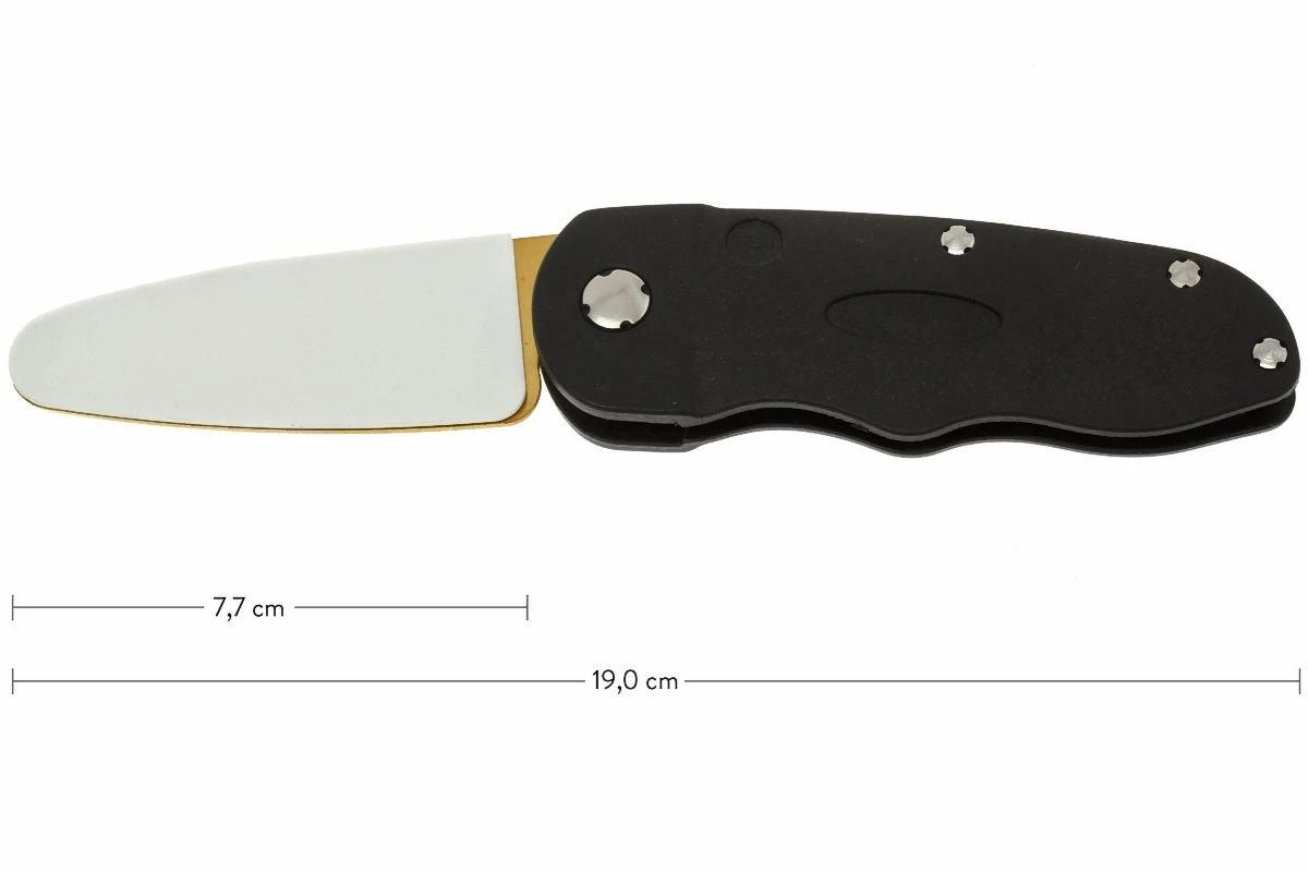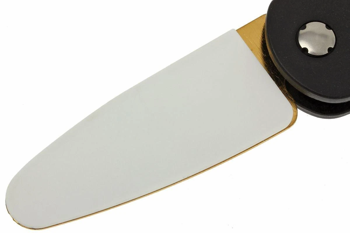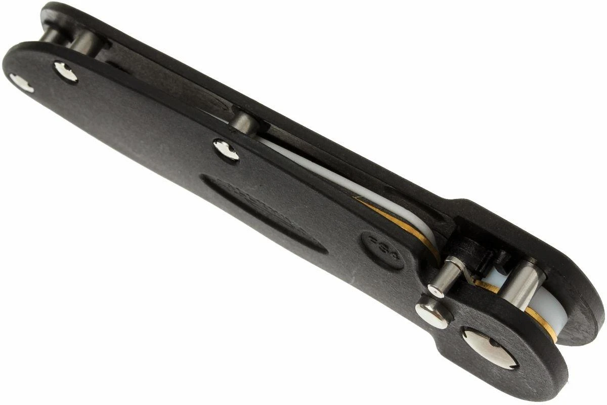 La piedra de afilar Flipstone es una piedra de afilar que se pliega automáticamente y se puede utilizar por dos lados. Las dimensiones podrían compararse con las de una navaja. La FS4 es apenas más grande que la FS3. Por lo tanto, puedes llevar siempre consigo esta piedra de afilar. El lado amarillo es una piedra de afilar de diamante con un tamaño de grano de 25 micras. La reparación del corte se realiza con este lado, mientras que el afilado máximo se determina con el lado cerámico de la piedra de afilar. Las dos piedras de afilar están pegadas y no se sueltan.