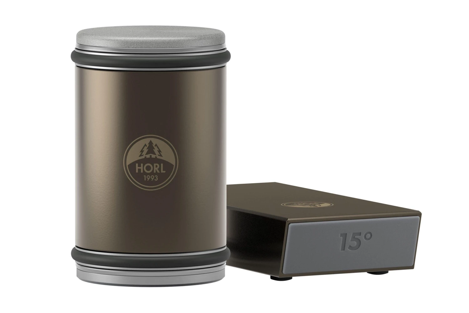 El afilador de cuchillos HORL 2 Pro es increíblemente ingenioso. Este afilador de cuchillos rodantes está especialmente mejorado con un mecanismo de rueda planetaria interna. Por ello, las piezas giratorias de este afilador giran tres veces más rápido en comparación con los otros afiladores de cuchillos HORL. El núcleo del afilador de cuchillos es de acero inoxidable. El exterior del afilador es de aluminio y está pintado de color bronce oscuro. Consigues resultados de afilado profesionales aún más rápido con el HORL 2 Pro.