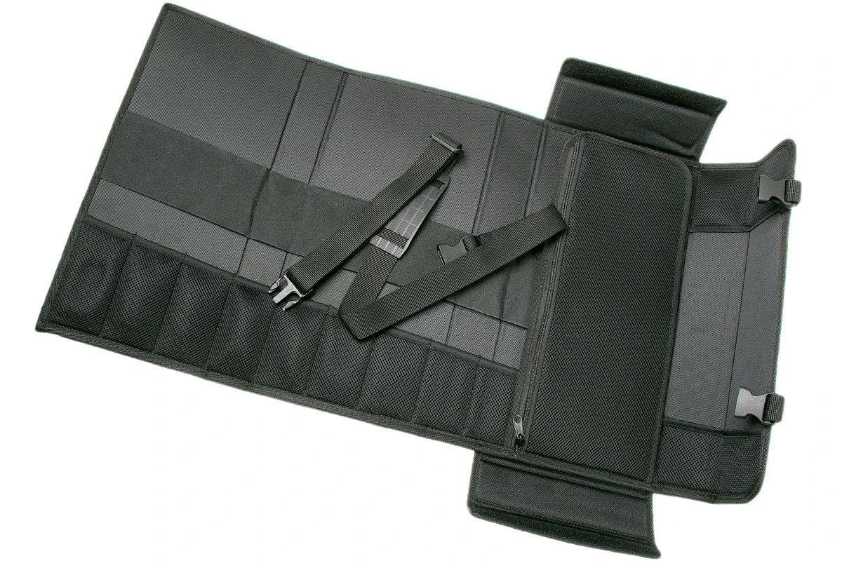 Con esta robusta bolsa para cuchillos Kai fabricada en piel sintética, podrás llevar tus cuchillos de cocina sin esfuerzo y de forma segura allá donde vayas. La bolsa ofrece espacio para 17 cuchillos de cocina. Ideal para el chef profesional o el aficionado que cocina regularmente en diferentes lugares.