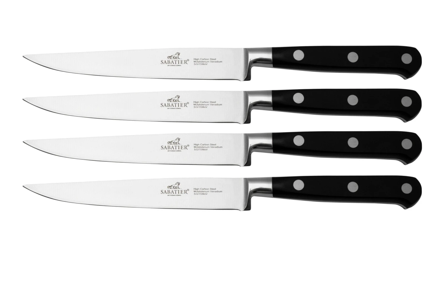 El Lion Sabatier International Licorne contiene cuatro magníficos cuchillos para carne con el diseño clásico de Sabatier. Estos elegantes cuchillos para carne son el complemento perfecto para una mesa elegante.