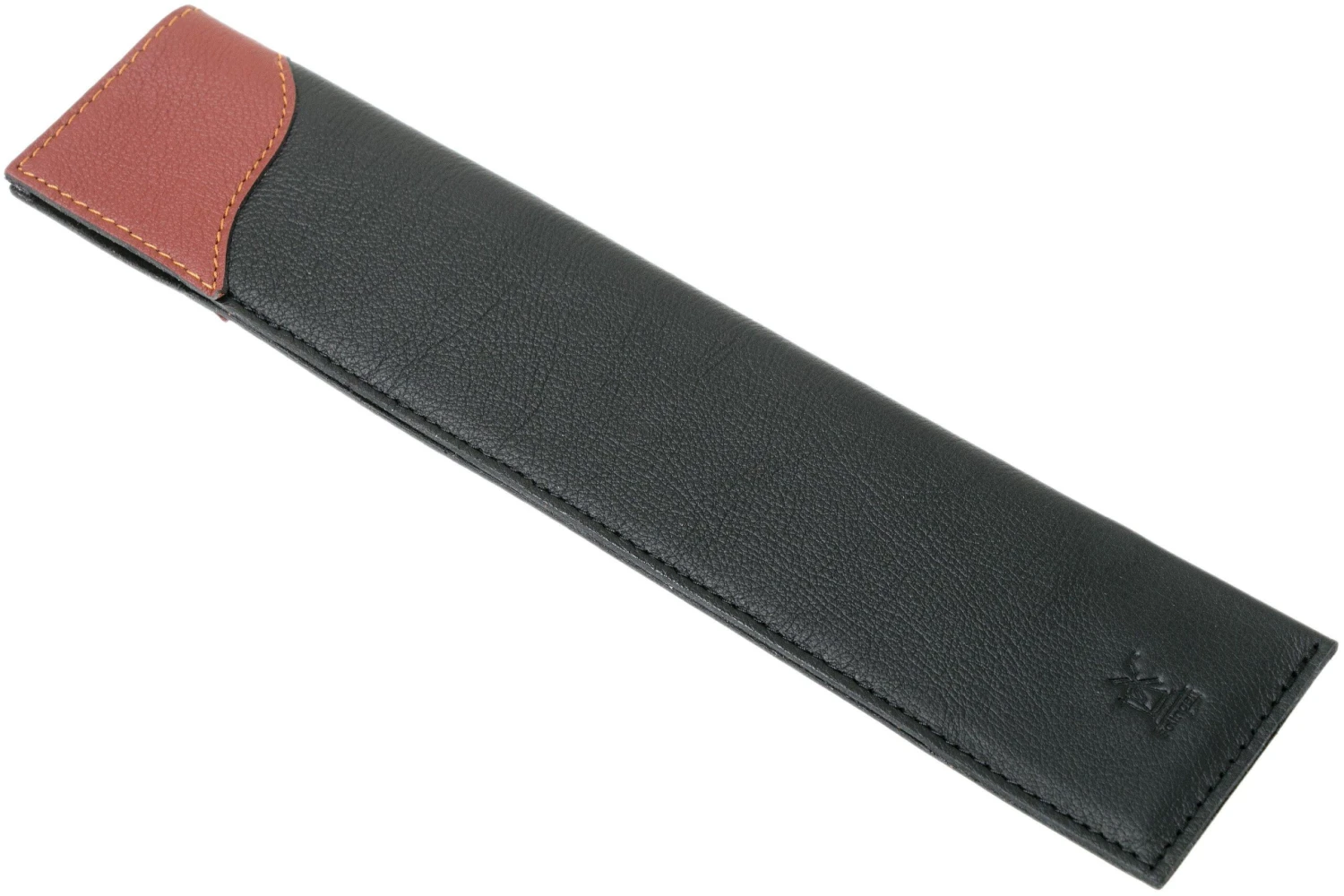 Este protector de cuchillos Robert Herder es perfecto para cuchillos de cocina con una longitud máxima de hoja de 24 cm. La altura máxima de la hoja es de unos 4 cm. La funda es de cuero y el interior tiene un forro suave.