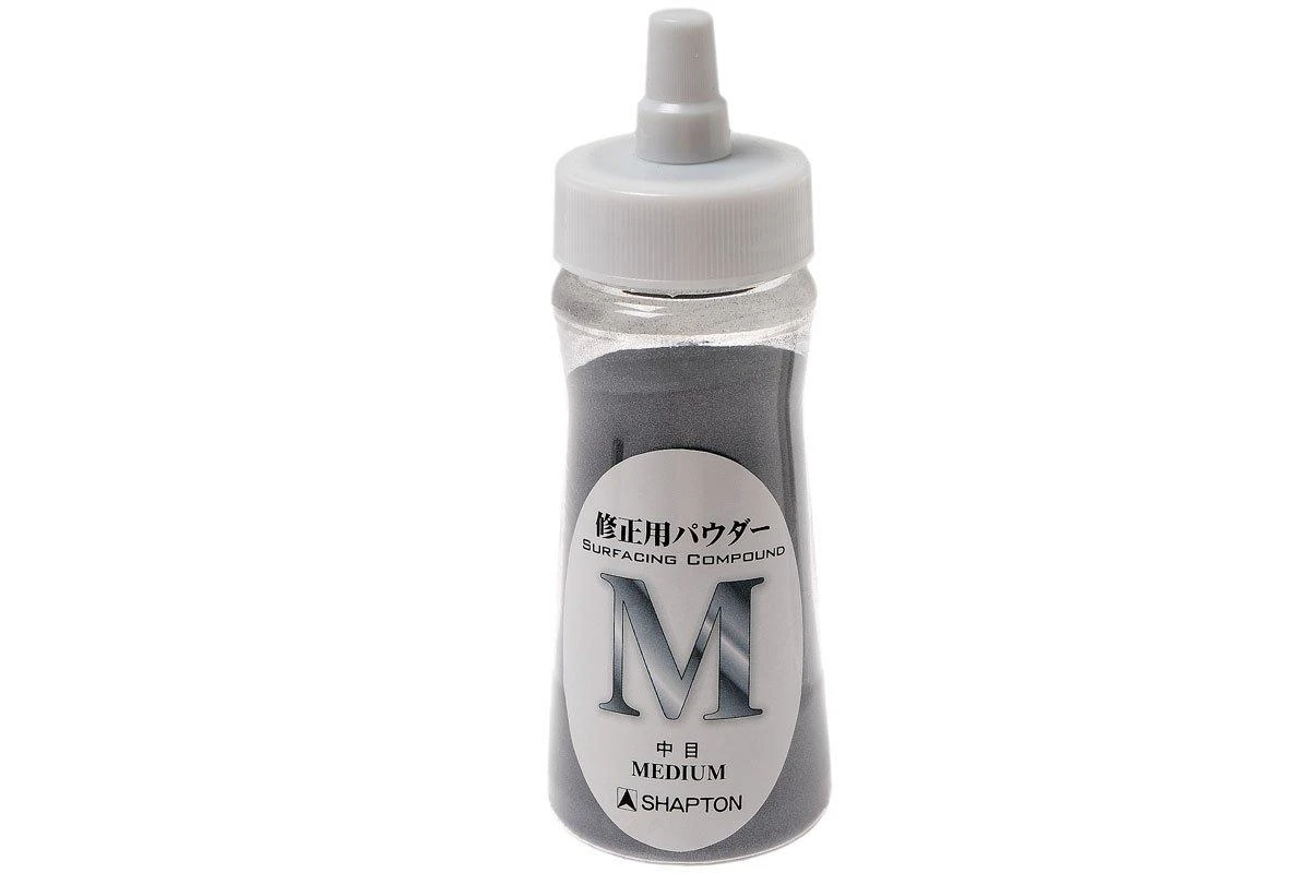Shapton Lapping Powder está pensado para ayudar a lapear tus piedras de afilar (Shapton). La botella está llena de granos de carburo de silicio de tamaño medio. Estos granos se utilizan en combinación con, por ejemplo, el sistema de lapeado Shapton Naoru o una placa de lapeado de vidrio.