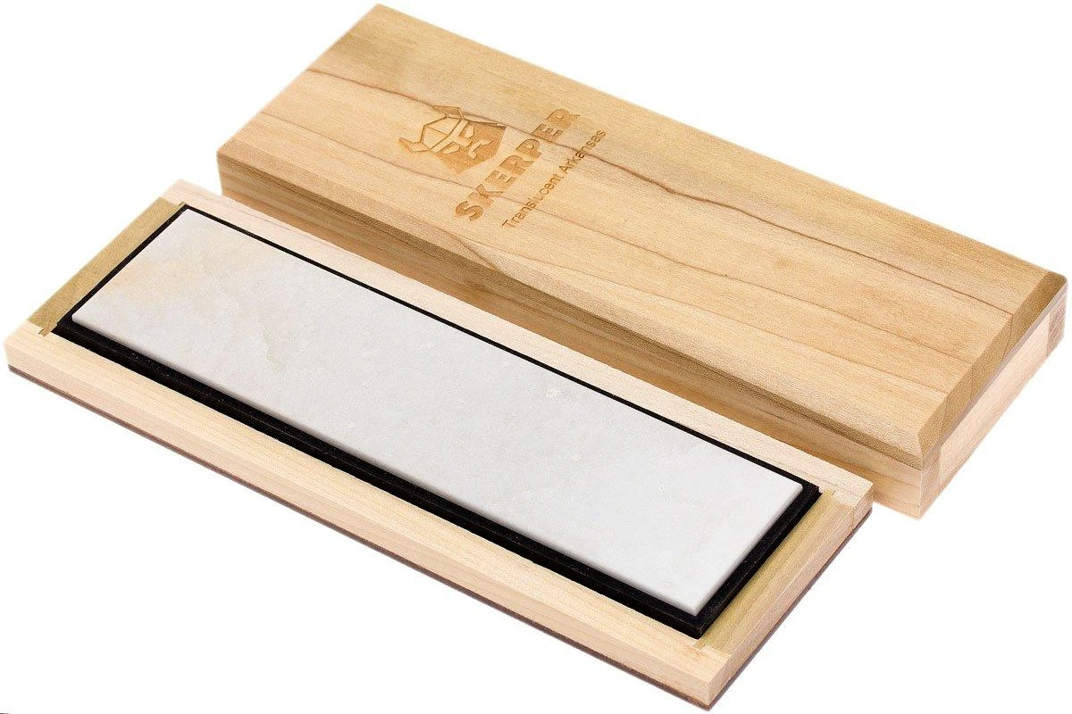 La piedra de afilar natural Skerper Translucent Arkansas es la más inusual de las piedras Arkansas, consiguiendo el acabado más fino. Equivale a una piedra de grano americano 8000-10,000, lo que producirá un borde altamente refinado. Es perfecta si buscas el resultado más afilado posible. Desde cuchillas rectas hasta cuchillos de chef, esta será una gran piedra de acabado para cualquier juego de afilado. Es lo suficientemente larga y ancha para todas las tareas de afilado, desde cuchillos de cocina y cuchillos de exterior hasta diversas herramientas para trabajar la madera y navajas. Estas piedras están disponibles en 5 granos diferentes. Cada piedra viene en su propia caja de madera para su almacenamiento y transporte.