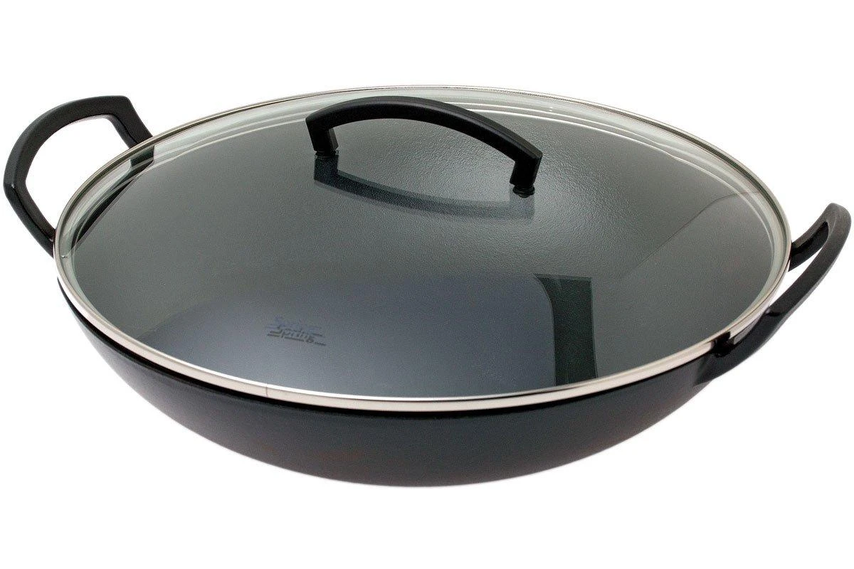 Spring Sartén Wok Hierro Fundido Con Tapa De Vidrio, 35 Cm