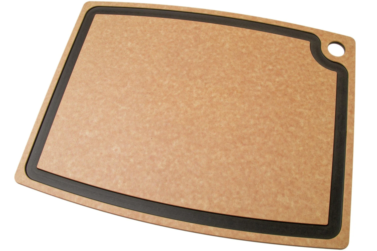 La fina y sólida tabla de cortar Victorinox Gourmet mide 49,5 cm de largo y 38 cm de ancho. La tabla tiene un aspecto moderno. Está hecha de fibras de madera. Se trata de un material de producción respetuoso con el medio ambiente. La tabla es increíblemente sostenible y puede soportar hasta 175 grados Celsius. Como tal, también es resistente al lavavajillas. La tabla marrón está reforzada con una «ranura» negra que puede atrapar la humedad y las migas, por ejemplo. Así, tu lugar de trabajo se mantiene seco y limpio.